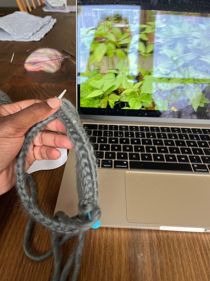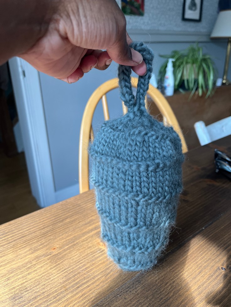 I used some wool roving from Hobbii called “Happy Wool” that I had in my wool pantry and 5mm needles and knitting a small “nest” in a couple of hours.
