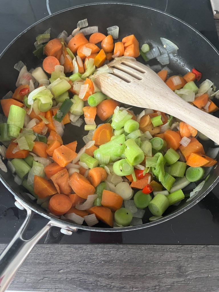 I rough chopped the veg