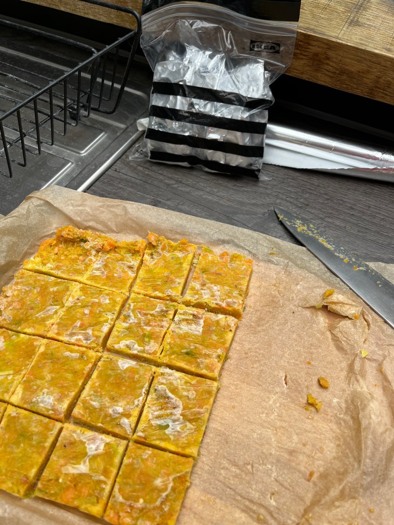 I then cut into small cubes, wrapped individually in foil and stored in a bag in the freezer to be used as you would shop-bought stock cubes.