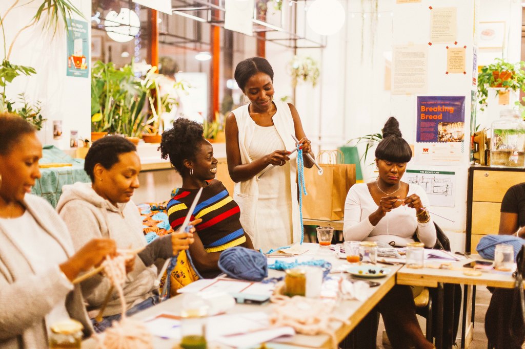 The existence of groups like the Black Girl Knits Club is one of those safe spaces organizing knit nights in London and outreaches into their communities encouraging young women of colour into craft. The hashtag “diversknitty” on social media and fibre artist Lorna Hamilton Brown’s distinction awarded MA thesis ‘Myth: Black People Don’t Knit – the importance of art and oral histories for documenting the experiences of black knitters’, confirms this is a conversation that needs to be had but currently, people of colour are the only ones having it.